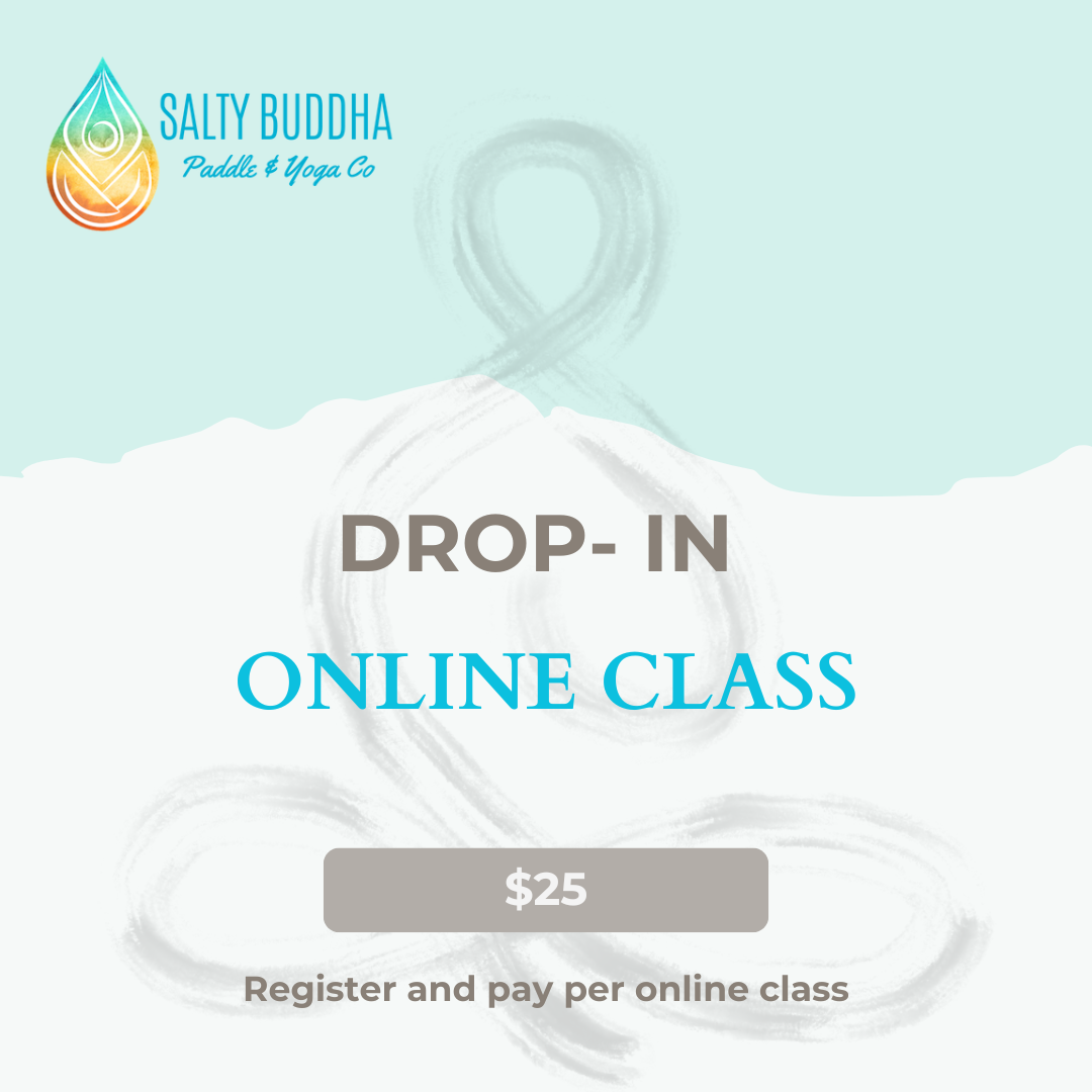 Salty Buddha’s online studio offers live, guided classes each week so you can stay grounded, strong, and connected — wherever you are.